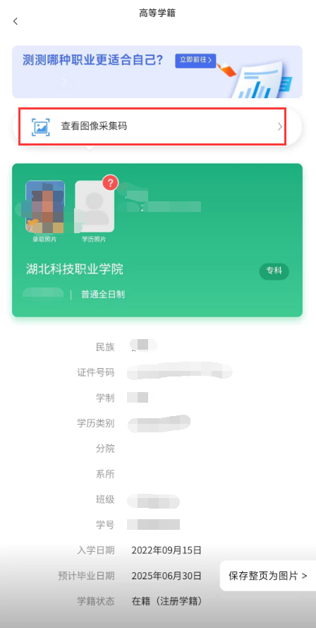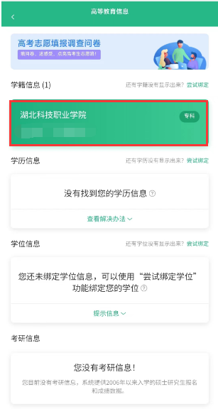 3. 选择学籍信息,点击“湖北科技职业学院”