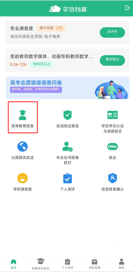 2.登录后,查看“进入学信档案”,选择“高等教育信息”