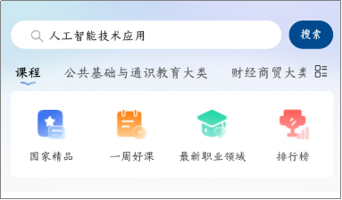 2.在搜索栏输入“人工智能技术应用”,点击“搜索”;