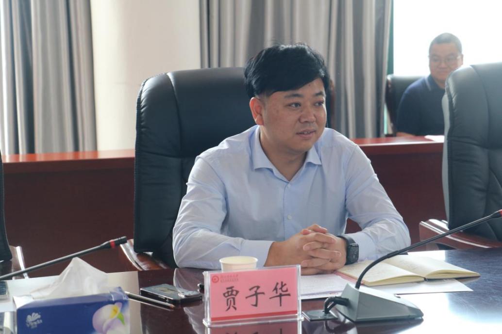 贾子华介绍了中电光谷产业的总体情况以及主要业务项目,并提出期待学校园区双方开辟多渠道合作,共同建立产学研科技合作平台,提供就业服务,在项目实施及成果创新中深度合作,加强产教融合,促进校企共同发展。