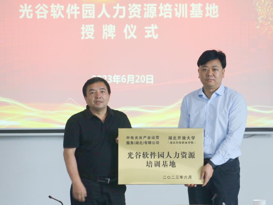 党委副书记、校长钟毓宁,党委常委、副校长宋移安,相关职能部门、二级教学单位主要负责人,中电光谷集团助理总裁贾子华、运营公司副总经理刘璐等出席并见证签约授牌。仪式由职院教务处、校企合作处处长夏学文主持。
