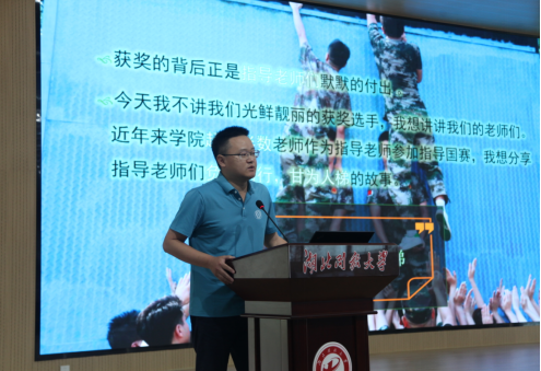 软件工程学院副院长赵海波作备赛经验分享。赵院长将本次的分享重点凝练到了学院14位备赛团队指导教师身上。光鲜亮眼的成绩值得被记住,但更应该记住的是指导老师们负重前行,甘为人梯的故事。以这14位教师为例,有默默奉献中流砥柱的中年骨干教师,也有一腔热血勇往直前的青年教师,他们身上有不同的闪光点与特色,但相同的就是他们一心为生、一心为教、一心为校的初心始终如一。