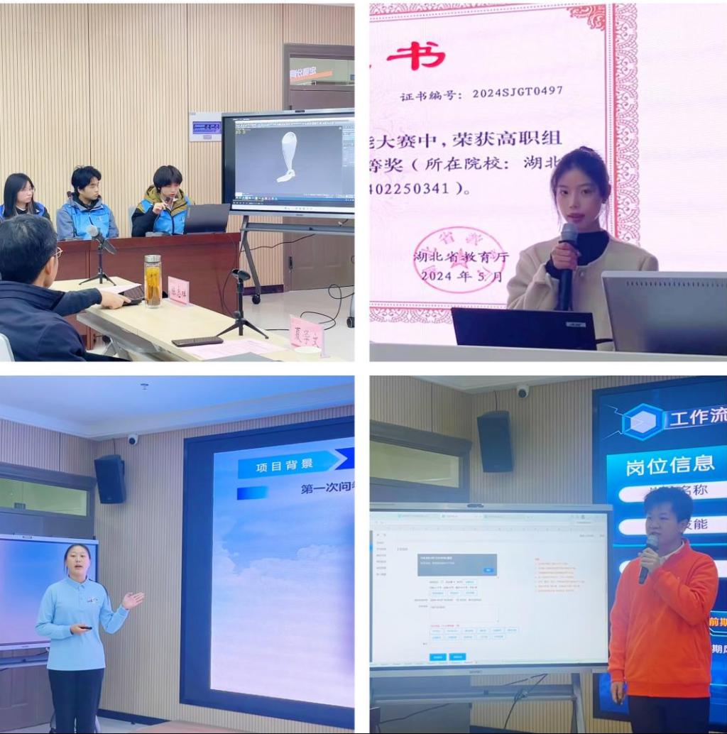 与现场展示的形式展现各自赛项的特点与亮点。他们把真实的赛场环境搬到总结交流现场,熟练的技能展示、流畅的项目讲解、专业的职场精神无一不展现出我校学子的赛场风范与职业素养。学生代表发言掷地有声,不谈比赛艰辛只谈赛场收获,谈学院老师关怀备至、谈学院领导谆谆教诲,谈学校各方大力支持,让他们有机会有实力站上国家级赛事领奖台。学生们表示他们将怀揣这份荣誉砥砺前行,继续影响和带动更多同学精进技能水平,传承工匠精神。